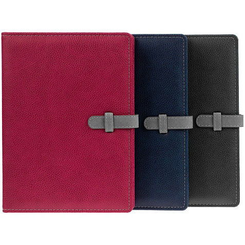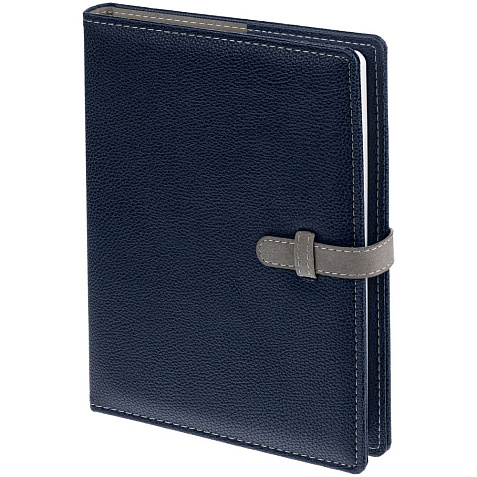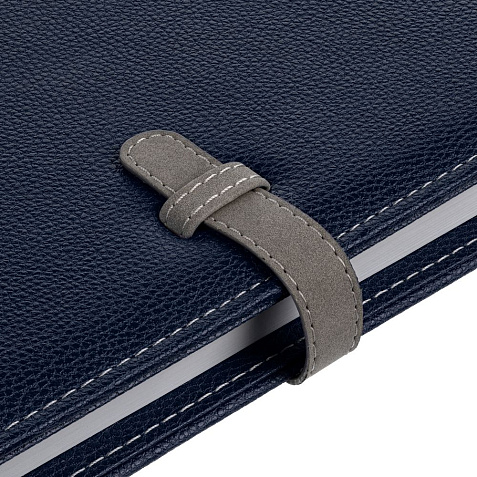 Ежедневник в мягкой суперобложке, выполнен из материала La Fite, темно-синий ХХ, дополнен ляссе серого цвета.