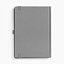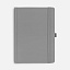 Ежедневник с твердой обложкой без поролона, выполнен из материала Soft Touch, серый СС, дополнен резинкой шириной 1 см, петлей-резинкой для ручки, капталом и ляссе серого цвета.