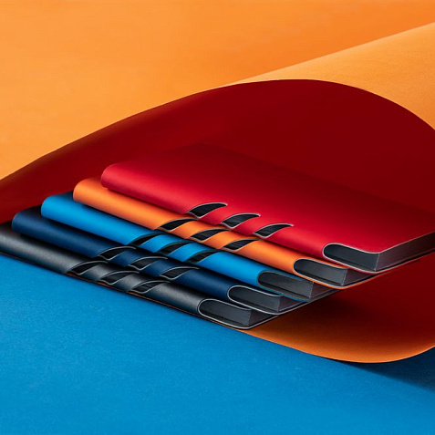 Ежедневник с гибкой обложкой выполнен из материала Soft Touch Pearl, синий НН и серого Latte (внутренняя часть обложки).