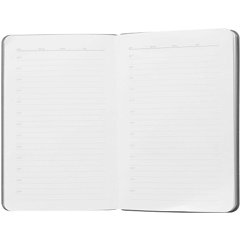 Ежедневник с гибкой обложкой выполнен из материала Soft Touch, светло-зеленый YY и серого Latte (внутренняя часть обложки).