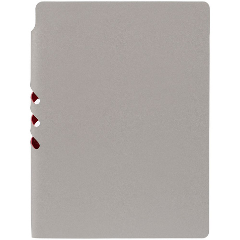 Гибкая обложка выполнена из материала Velour Melange, серый СС и Latte, красный PP (внутренняя часть обложки). Внутри корешка — специальное место для крепления ручки размером до 15х0,9 см.