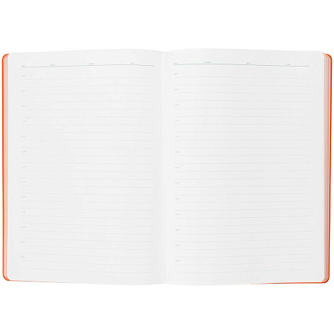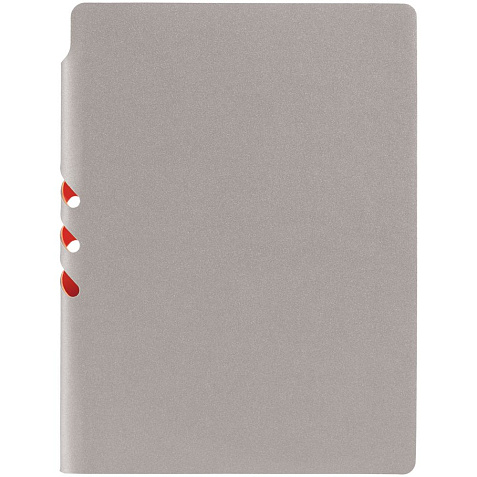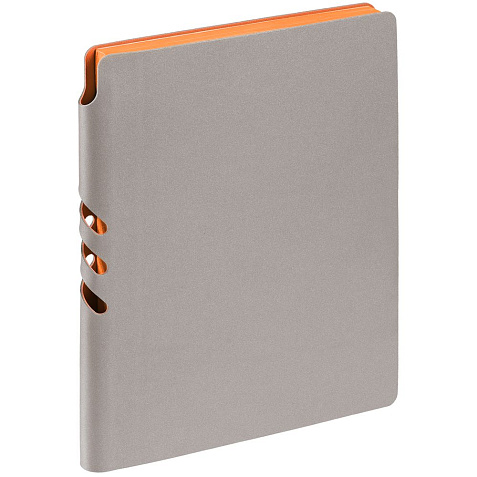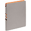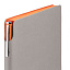 Гибкая обложка выполнена из материала Velour Melange, серый СС и Latte, оранжевый OO (внутренняя часть обложки). Внутри корешка — специальное место для крепления ручки размером до 15х0,9 см.