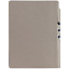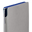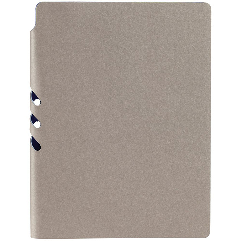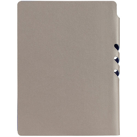 Гибкая обложка выполнена из материала Velour Melange, серый СС и Latte, синий НН (внутренняя часть обложки). Внутри корешка — специальное место для крепления ручки размером до 15х0,9 см.