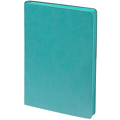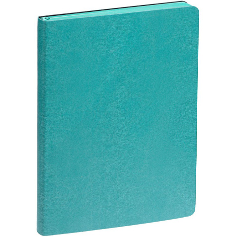 Ежедневник с гибкой обложкой, выполнен из материала Latte, бирюзовый, дополнен ляссе в цвет обложки.