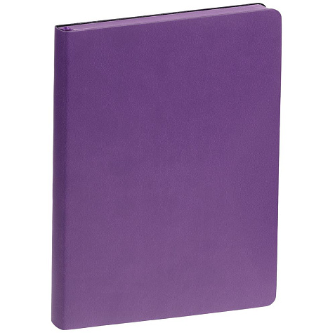 Ежедневник с гибкой обложкой, выполнен из материала Latte, фиолетовый, дополнен ляссе в цвет обложки.