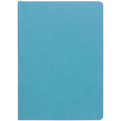 Ежедневник с гибкой обложкой, выполнен из материала Latte, голубой, дополнен ляссе в цвет обложки.