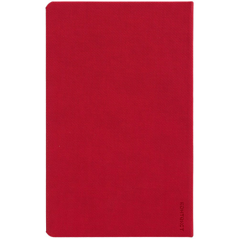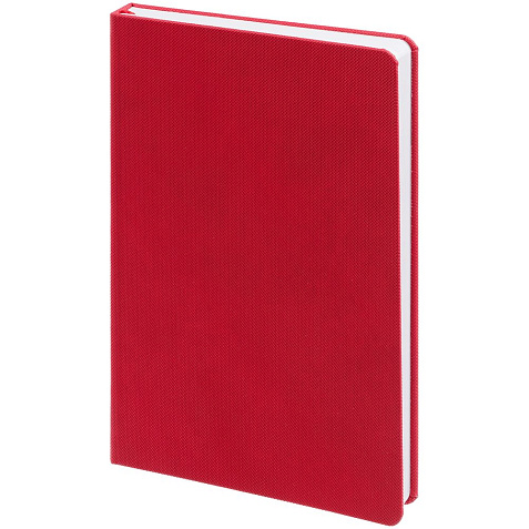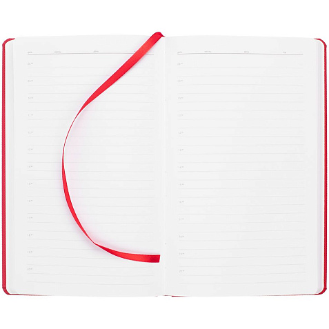 Ежедневник с твердой обложкой, выполнен из материала Canyon, красный РР, дополнен ляссе в цвет обложки.