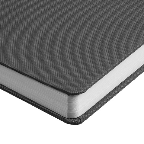 Ежедневник с твердой обложкой, выполнен из материала Canyon, темно-серый ЕЕ, дополнен ляссе в цвет обложки.