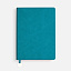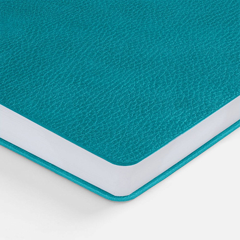 Ежедневник с гибкой обложкой, выполнен из материал La Fite, цвет морской волны II, дополнен ляссе в цвет обложки с металлическим шильдом.