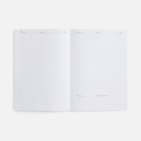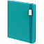 Ежедневник с полутвердой обложкой выполнен из материала Nice Touch, морская волна II, и дополнен резинкой шириной 1 см с металлическим шильдом и ляссе в цвет обложки.