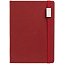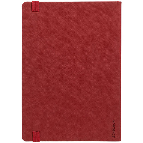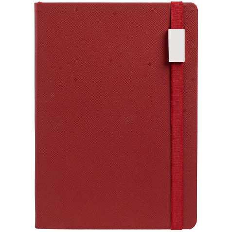 Ежедневник с полутвердойобложкой выполнен из материала Nice Touch, красный PP, и дополнен резинкой шириной 1 см с металлическим шильдом и ляссе красного цвета.