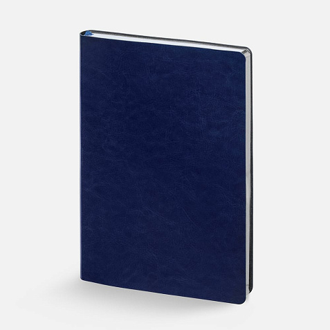 Ежедневник с гибкой обложкой, выполнен из материала Nebraska, синий HH, дополнен ляссе темно-синего цвета.