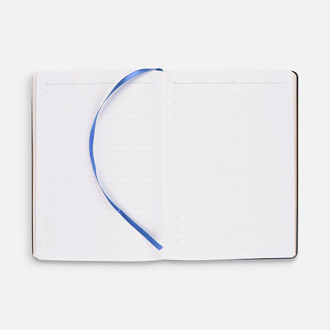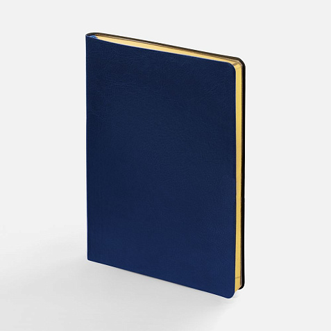Ежедневник с гибкой обложкой, выполнен из материала Nebraska, темно-синий ХХ, дополнен ляссе темно-синего цвета.