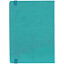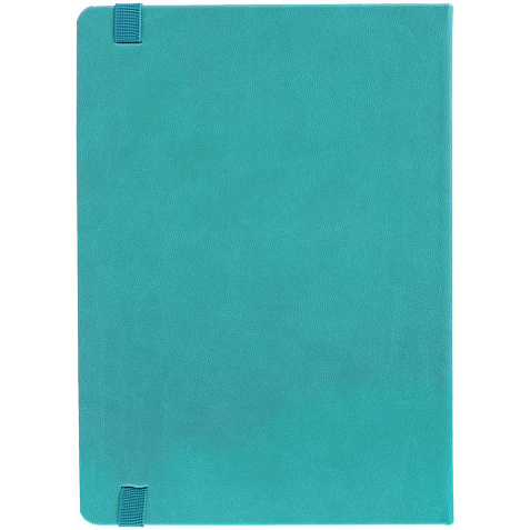 Ежедневник с твердой обложкой, выполнен из материала Latte, цвет морской волны II, обрез бирюзового цвета, дополнен ляссе бирюзового цвета и резинкой с металлическим шильдом.