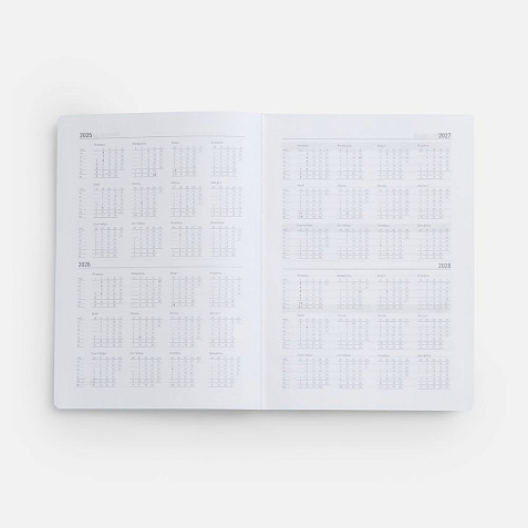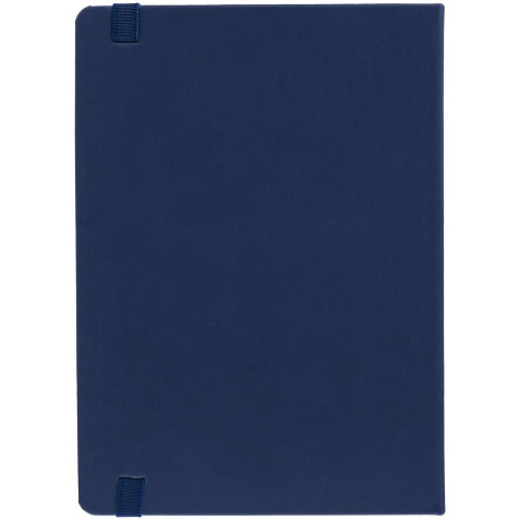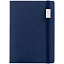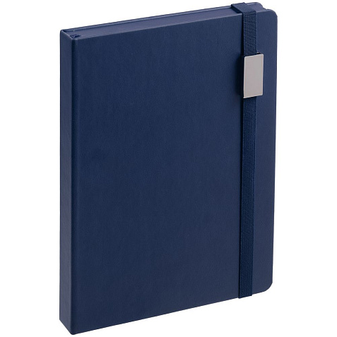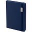 Ежедневник с твердой обложкой, выполнен из материала Latte, темно-синий ХХ, обрез темно-синего цвета, дополнен ляссе темно-синего цвета и резинкой с металлическим шильдом.