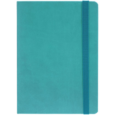 Ежедневник с твердой обложкой, выполнен из материала Latte, цвет морской волны II, обрез бирюзового цвета, дополнен резинкой и ляссе бирюзового цвета.