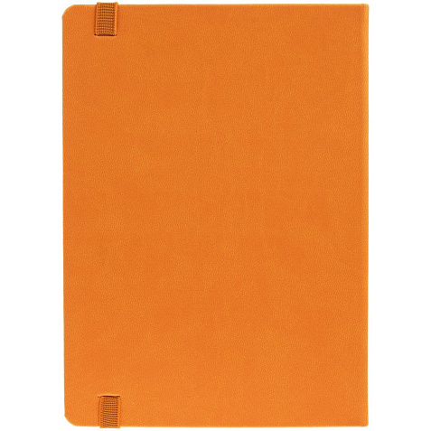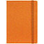 Ежедневник с твердой обложкой, выполнен из материала Latte, оранжевый ОО, обрез оранжевого цвета, дополнен резинкой и ляссе оранжевого цвета.