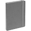 Ежедневник с твердой обложкой, выполнен из материала Latte, серый СС, обрез серого цвета, дополнен резинкой и ляссе серого цвета.