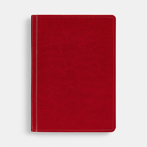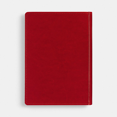 Ежедневник с твердой обложкой без поролона, выполнен из материала Nebraska, красный PP, дополнен ляссе и капталом в цвет обложки.