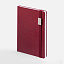 Ежедневник с твердой обложкой, выполнен из материала LaFite, красный РР, дополнен резинкой с металлическим прямоугольным шильдом и ляссе в цвет обложки.