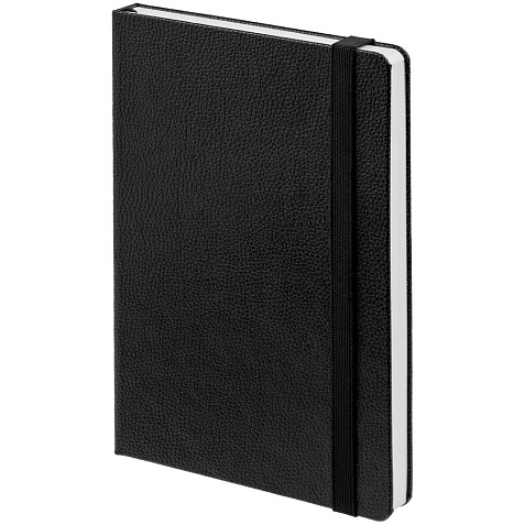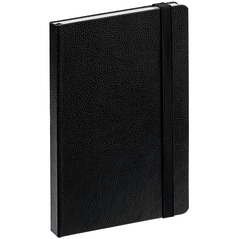 Ежедневник с твердой обложкой, выполнен из материала LaFite, черный АА, дополнен резинкой и ляссе в цвет обложки.