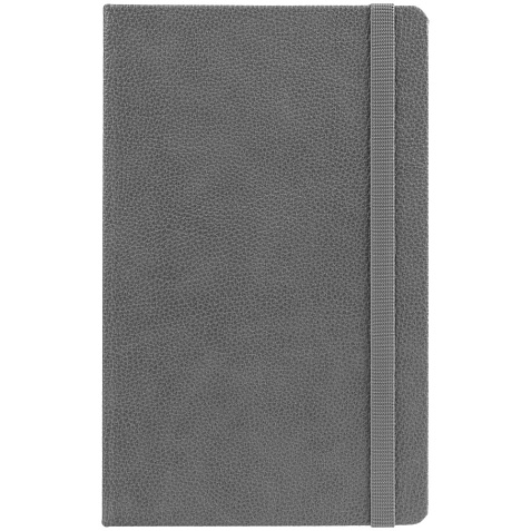 Ежедневник с твердой обложкой, выполнен из материала LaFite, серый СС, дополнен резинкой и ляссе в цвет обложки.