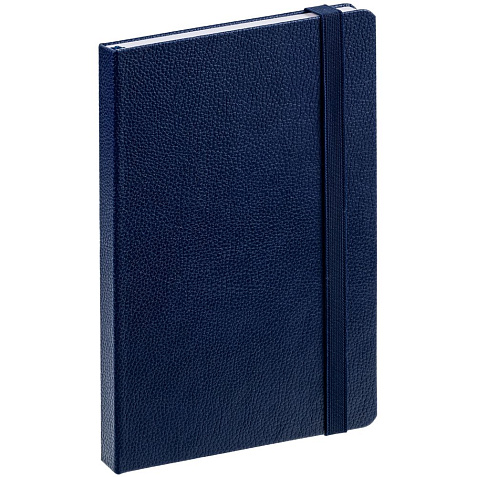 Ежедневник с твердой обложкой, выполнен из материала LaFite, темно-синий ХХ, дополнен резинкой и ляссе в цвет обложки.