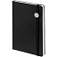 Ежедневник с твердой обложкой, выполнен из материала LaFite, черный АА, дополнен резинкой с металлическим круглым шильдом и ляссе в цвет обложки.