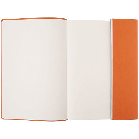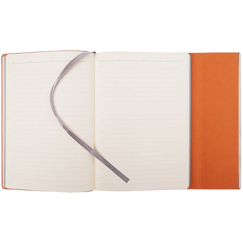Ежедневник с гибкой обложкой, клапаном на магните и металлической отделкой клапана. Выполнен из материала Petrus, оранжевый ОО, дополнен серым ляссе.