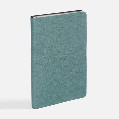 Ежедневник с гибкой обложкой, выполнен из материала Petrus, голубой JJ, дополнен серым ляссе с металлическим шильдиком.