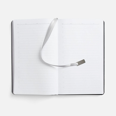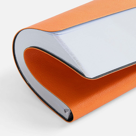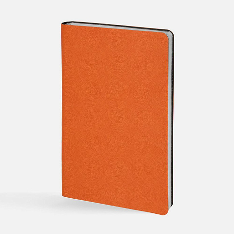 Ежедневник с гибкой обложкой, выполнен из материала Petrus, оранжевый ОО, дополнен серым ляссе с металлическим шильдиком.