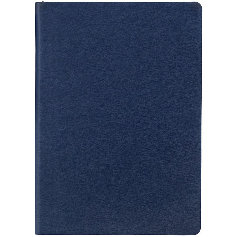Ежедневник с гибкой обложкой, выполнен из материала Latte, темно-синий, дополнен ляссе в цвет обложки.