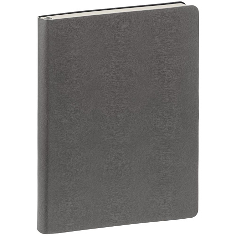 Ежедневник с гибкой обложкой, выполнен из материала Latte, темно-серый, дополнен ляссе в цвет обложки.