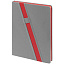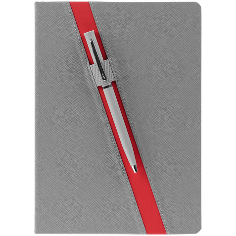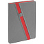 Ежедневник с твердой обложкой и тонированным обрезом. Выполнен из материала Nice Touch, серый СС, и Soft Touch Ultra, красный РР, дополнен серым ляссе.
