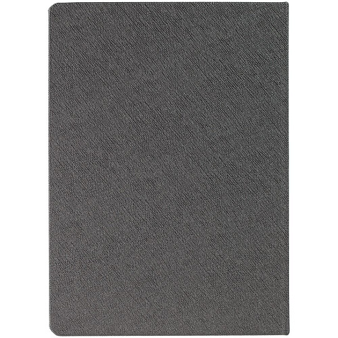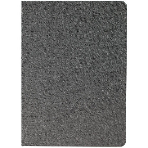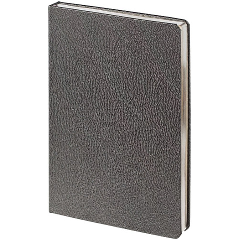 Ежедневник с твердой обложкой и серебристым обрезом, выполнен из материала Saffian, темно-серый, дополнен ляссе в цвет обложки.