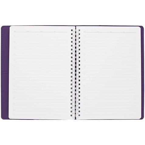 Ежедневник с твердой обложкой, выполнен из материалов Nice Touch, фиолетовый UU и Soft Touch серый, СС и фиолетовый.