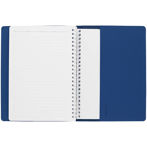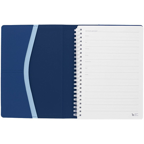 Ежедневник с блоком на пружине в твердой обложке, выполнен из материалов Nice Touch, синий НН и Soft Touch синий/голубой.