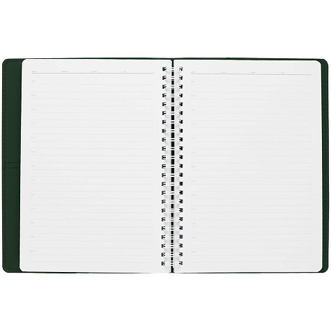 Ежедневник с блоком на пружине в твердой обложке, выполнен из материалов Nice Touch, Soft Touch и Soft Touch Ultra зеленый.