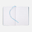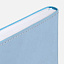 Ежедневник с гибкой обложкой из материала Soft Touch, голубой и Latte, голубой (внутренний материал), дополнен петелькой для ручки из покровного материала, капталом, ляссе и закрашенным срезом обложки в цвет материала.