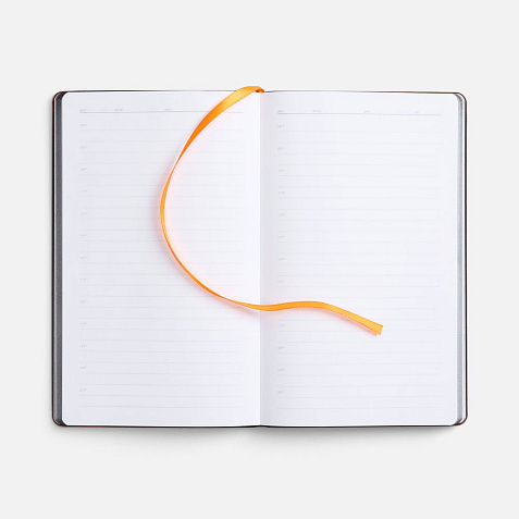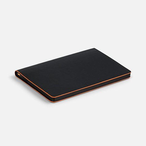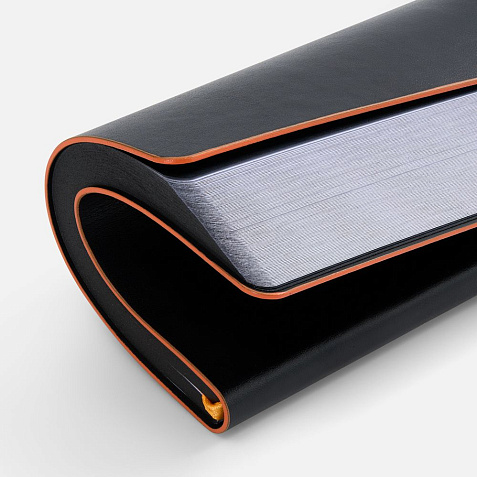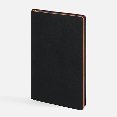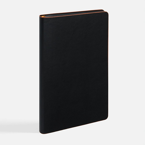 Ежедневник с гибкой обложкой, выполнен из материала Waltz, черный АА, дополнен цветными срезом обложки и ляссе.