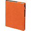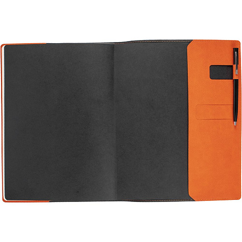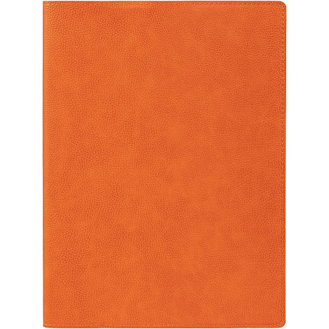 Ежедневник в суперобложке выполнен из материала La Fite, оранжевый ОО, дополнен ляссе и капталом черного цвета.