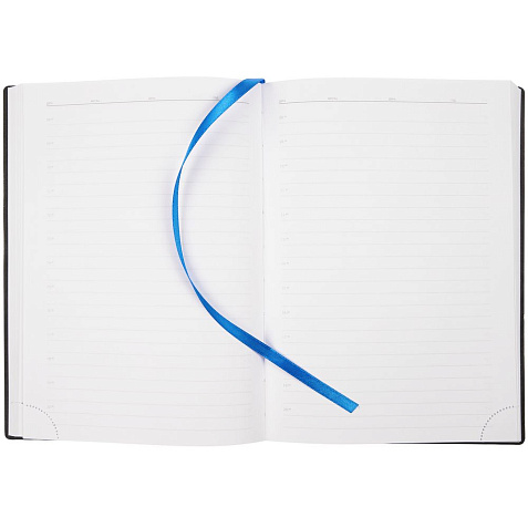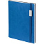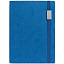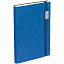 Ежедневник с гибкой обложкой, выполнен из материала Latte, синий НН, дополнен резинкой шириной 1 см с металлическим шильдом, капталом и ляссе синего цвета.