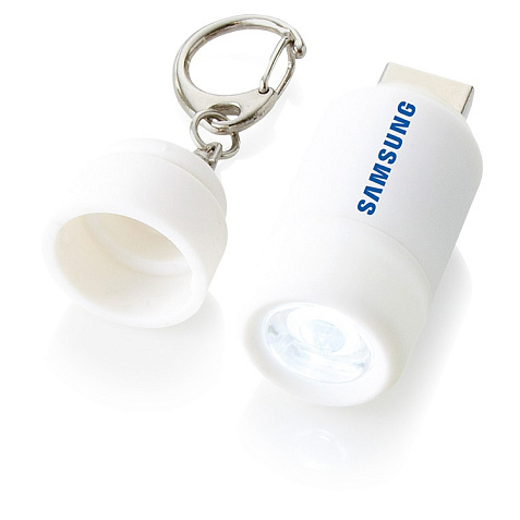 Брелок-фонарь Avior с зарядкой от USB. Светодиодный фонарик с зарядкой от USB с поворотной кнопкой вкл/выкл и металлическим кольцом для ключей. Батарейка включена в комплект. АБС-пластик с мягким на ощупь покрытием. УФ-печать (без лака) на данный товар осуществляется бесплатно. Оплачивается только настройка оборудования в размере 3600 рублей на весь тираж.
