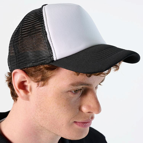 Бейсболка с 5 клиньями из сетки. Поролон в переднем клине (5 мм) и козырьке (3 мм). Регулируемая пластиковая застежка.