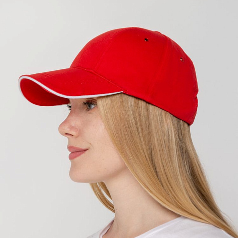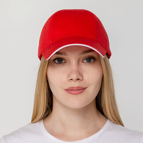 Бейсболка Canopy, красная с белым кантом