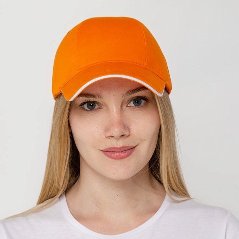 Бейсболка Canopy, оранжевая с белым кантом