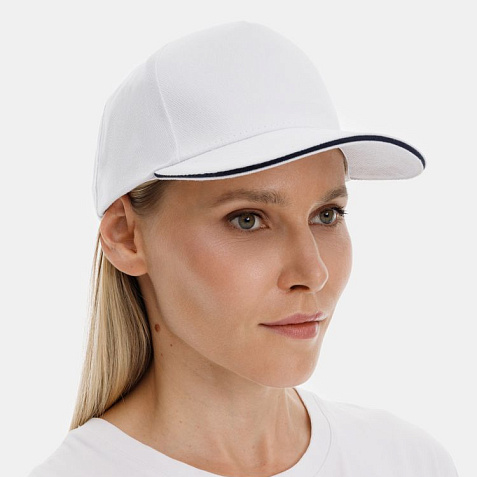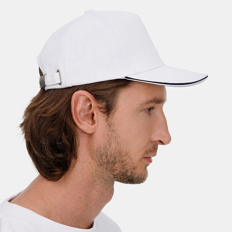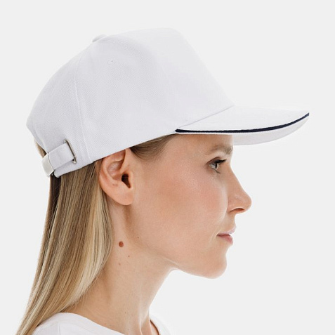 Модель бейсболки с 5-ю клиньями без лобового шва из плотного чесаного хлопка.