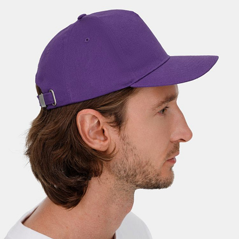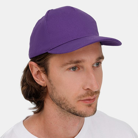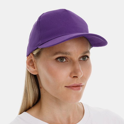 Модель бейсболки с 5-ю клиньями без лобового шва из плотного чесаного хлопка.
