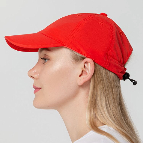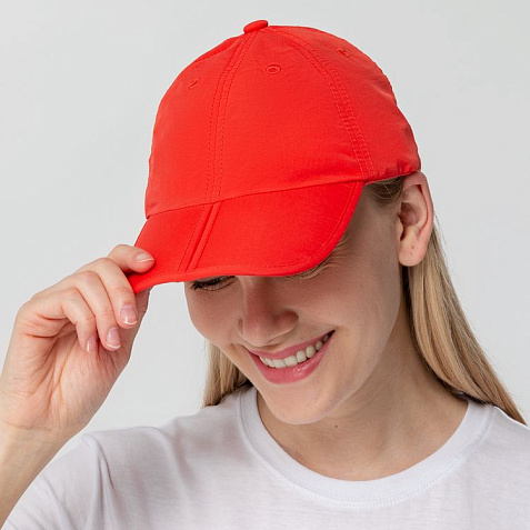 Бейсболка удобно складывается — ее  можно убрать в рюкзак или чемодан, не опасаясь, что козырек потеряет форму. При этом внешне она выглядит как обычная: шов посередине не искажает классическую форму козырька, когда кепка надета на голову.