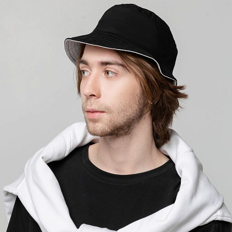 Панама Summer двусторонняя, черная с серым